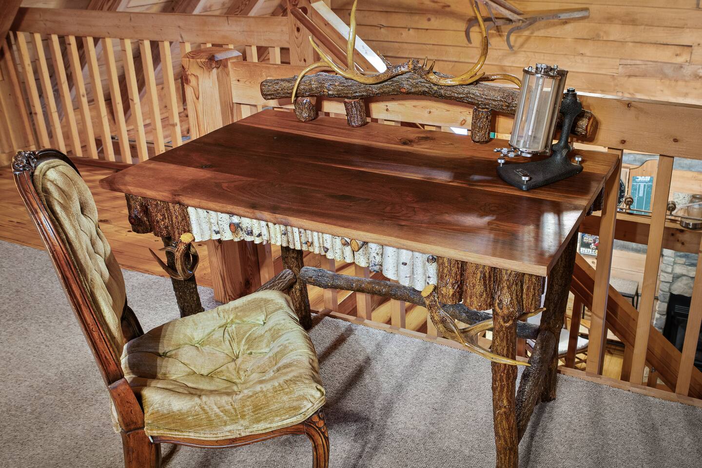 A Blue Ridge Haven is an Appalachian-style log cabin in the Blue Ridge Highlands of Virginia, two miles from the Blue Ridge Parkway near wineries, hiking, antiquing, and more. The cabin is well-appointed, comfortable, and sleeps up to 6 with everything you need for an enjoyable stay. Come on out to play and/or work! This air-conditioned and fully furnished contemporary Appalachian-style log cabin # 15 is constructed of hand-hewn hemlock logs, and well-appointed with everything you need, including AC, cozy gas fireplace (seasonal), Wi-Fi, 42” smart TV, fully-equipped kitchen, all towels/sheets, and more! Enjoy the views of the mountains and the Dan River from your large private balcony. Inside, enjoy the custom-appointed accents such as hand-crafted black walnut furniture, stone and wood accents, full kitchen, and loft/second bedroom with writing table. The cabin is nestled in the heart of the Blue Ridge Mountains within The Villages of Blue Ridge Passage Resort (formerly Blue Ridge Passage Resort), conveniently located within a couple hours drive from RTP, Greensboro, Charlotte, and Roanoke! Enjoy live bluegrass along the Crooked Road-Virginia's Heritage Music Trail located by the village of Meadows of Dan, and nearby Stuart, Floyd, and Hillsville. Enjoy hiking, waterfalls and fishing nearby Buffalo Mountain, Rocky Knob, and don’t miss several wineries, cideries, meaderies and many other attractions and events in the area. The cabin offers 4 queen sized beds (2 queen beds and 2 queen futons) sleeping up to 6 guests. We are children and dog friendly. (2 dog limit)